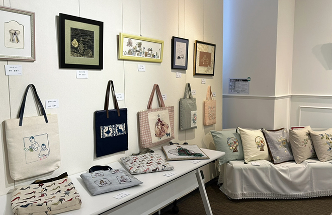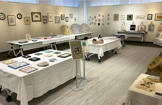 会場では、額装作品だけでなく、傘、バッグ、クッション、タペストリーなど、生活の中を彩る刺しゅう作品もご覧いただけます。