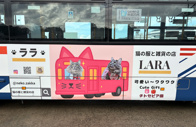 今回は、猫の服と雑貨の店LARAのラッピングバスをご紹介します。