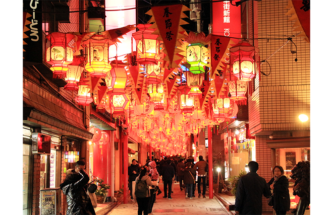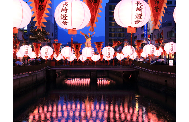 長崎新地中華街をはじめ、湊公園、中島川、浜町アーケードなど、長崎市内の中心部に約15,000個ものランタン(中国提灯)と大型オブジェが飾られ、幻想的に街を彩ります。