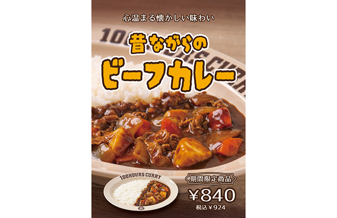 100時間カレーみらい長崎ココウォーク店では、期間限定メニューとして「昔ながらのビーフカレー」を2/1(日)から販売中です。