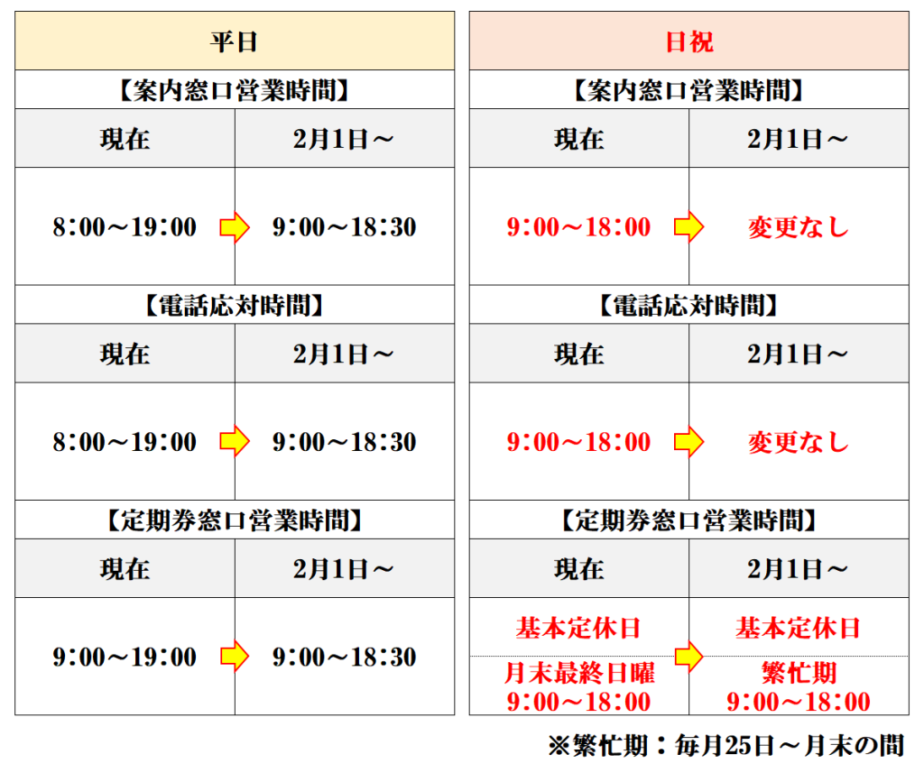 ※基本、日曜・祝日は定期券窓口の営業を休止いたします。