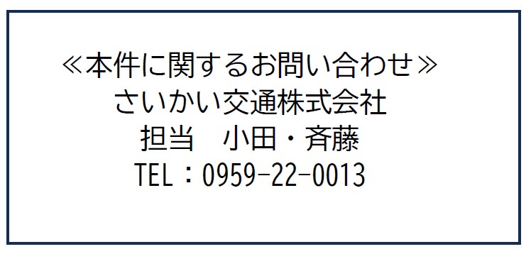平素より、さいかい交通の運行につきまして、ご理解とご協力を賜り、誠にありがとうございます。